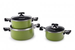 Đáy nồi 5 lớp đảm bảo độ bền cực cao cho người dùng. Kích thước của ba chiếc nồi lần luợt là 1 nồi 16cm, 1 nồi 20cm và 1 nồi 24cm.